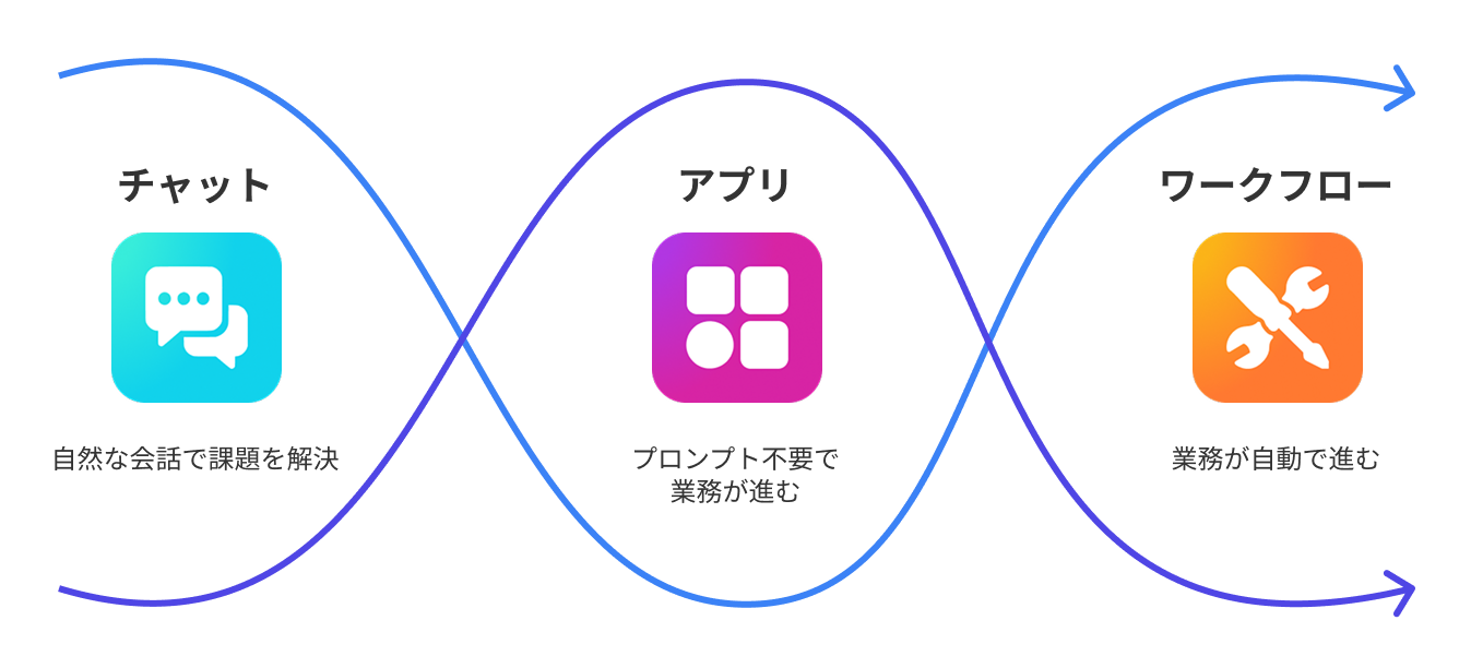 社員のIT/AIリテラシーに左右されることなく、全社でAI活用を促進し、組織全体の業務効率化を後押しします。