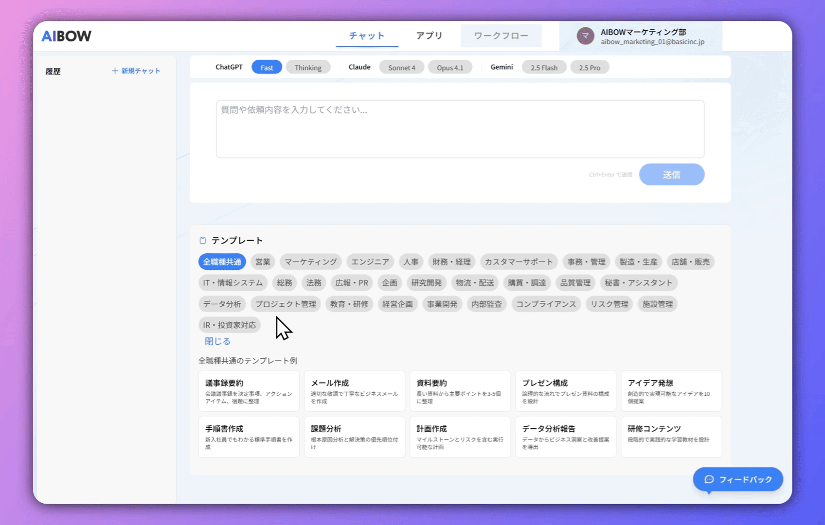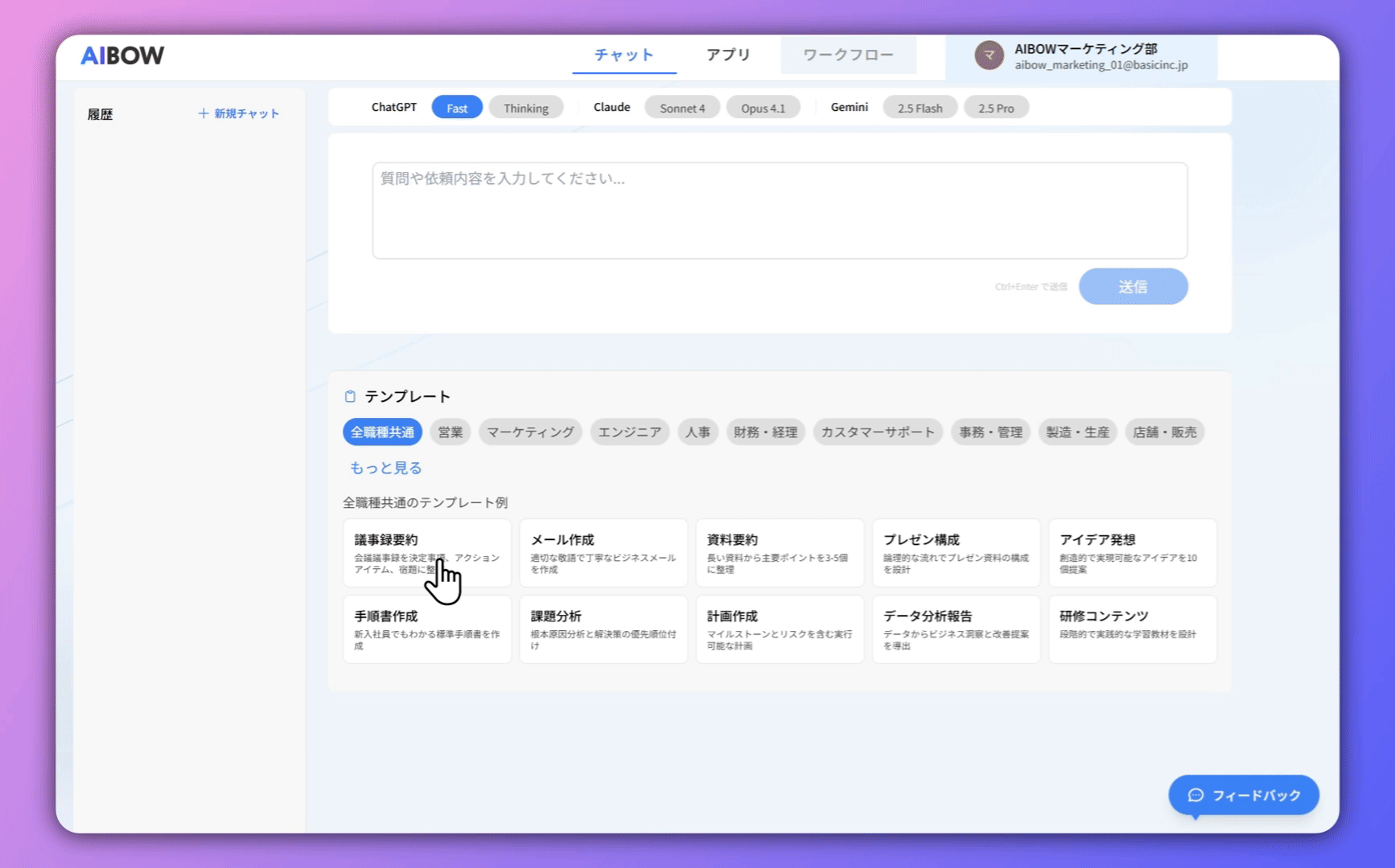 AIBOWに集約することで、生成AIの利用環境を一元化できます。