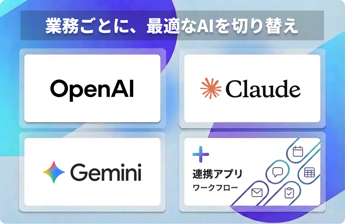 ChatGPT、Claude、Gemini など、用途ごとに生成AIを個別契約・個別管理する必要はありません。